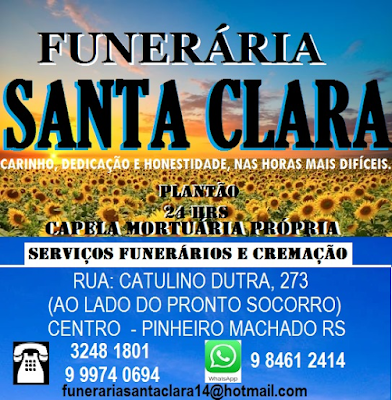 O corpo esta sendo velado na capela municipal de Pedras Altas e o sepultamento acontece amanhã (15) as 9 horas no cemitério local de Pedras Altas.
